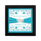 This pretty wooden trinket box with a ceramic tile in the lid would be a lovely way to thank your Bridesmaids and give them a lasting keepsake of your special day, or get one for yourself to hold your special wedding day jewelry in. It coordinates with the turquoise blue and silver love hearts wedding collection and has a turquoise or teal blue and white background. There is a turquoise blue ribbon and joined hearts image running the full width of the keepsake box and turquoise flower and vine arches wrap around the wording that says, "Two Hearts Became One" above the ribbon, with the names of the couple and the wedding date below the ribbon.