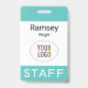 Easily personalize our staff ID name badge with your company logo, employee name, or other custom text. It's pvc plastic and available with a lanyard, clip, or a retractable reel. Designed in turquoise blue with a modern minimalist design by MISOOK. Also available in other colors and all colors are customizable. No minimum order quantity and no setup fee.
