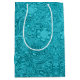 Turquoise-Blue Suede Leather Floral Pattern Medium Gift Bag