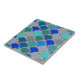 © 2012 Socialite Designs. Our retro blue, turquoise, teal and gray fish-scale pattern tile provides a splash of color to your living area. Great to use as a trivet / coaster or wall art.