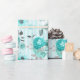 Turquoise Blue & White Floral Striped All Occasion Wrapping Paper