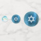 Add some extra style to your favorite B’nai Mitzvah’s celebration party with this customizable table confetti! Stunning, modern, sparkly gold faux foil handwritten script and Star of David with tiny blue dots against a turquoise blue watercolor background on one side mix with a white Star of David over a faux metallic blue background on the other. Personalize the custom text with their names and date of event. Matching and coordinating invites, address labels, stickers, banners, welcome signs and other B’nai Mitzvah goodies are also available in this trendy and special collection.