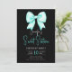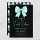 Turquoise Bow Coquette Script Sweet 16 Black Invitation