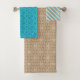 TURQUOISE BROWN & TAN STRIPES PATTERNS BATH TOWEL SET