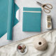 This paper features a turquoise faux burlap texture. Makes a nice wrapping paper for gifts as well as paper crafting projects.