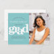 Make sure all your friends and relatives will still be able to celebrate your graduate’s milestone event, regardless of current global unforeseen circumstances. Send out this stunning, simple, modern, personalized photo “Change of Plans” postcard for an event to remember. Bold, graphic, white typography overlays a turquoise aqua blue background. On the right hand side, add a photo of your choice. Personalize the custom text with your graduate’s name, class year and date information. Your custom message, a turquoise aqua blue graduation cap icon and your return address adorn the back. Matching invites, thank you cards, cap toppers, napkins, plates and other graduation goodies are also available in this trendy and stylish collection. Make sure their special celebration will still be as festive as originally planned!