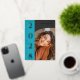 Turquoise Charcoal Modern Graduation Party Foil Invitation Postcard