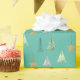Turquoise Christmas Pine Tree Watercolor Pattern Wrapping Paper