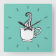 A steamy cup of coffee gives this wall clock retro style. This coffee clock is great for a kitchen, cafe, bakery, diner, dinning room, coffee shop, reto decor, etc...The design is from original art.
