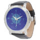 Turquoise Compass Rose On Navy Blue Watch