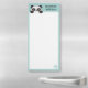 Cute magnetic notepad you can keep on the fridge with a curious panda peeking out from behind the writing area. A panda notepad for the fridge in turquoise with a large white area for writing. Magnetic notepad personalized with your name. A cute kawaii panda with blushing cheeks and black paws.