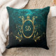 Turquoise Damask gold Frame Personalized Throw Pillow