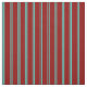 This design features a pattern of stripes having colors like turquoise and dark red.