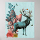 Turquoise Deer in Mushroom Forest Poster
