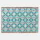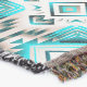 This design features a geometric pattern with a repeating diamond shapes motif with blurred, feathered edges radiating outward. The overall effect combines symmetry, energy, and depth — a balance of tribal feel and modern geometry in turquoise, gray and cream.