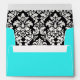 Turquoise Envelope with damask pattern inside. Wedding invitations fit in this envelope and can be fully customized. Matching wedding stationery is available in this store.