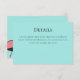 A wedding details enclosure card in turquoise with black text and a flamingo bride and groom on the back. Place your information on this card, add it to your cart, then send it to your guests.