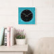 Turquoise Floral Faux Leather Embossed Look 2 Square Wall Clock
