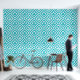 A turquoise geometric quilt pattern featuring stylized flowers within a diamond frame, bordered by zigzag shapes.