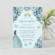 Turquoise Floral Watercolor Princess Quinceañera Invitation