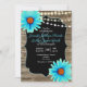 Turquoise floral wood string of lights wedding invitation