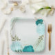turquoise flowers green leaves wedding paper plates
