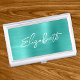 Turquoise Foil Modern Brush Script First Name Business Card Case