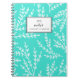 Turquoise Foliage Pattern Personalized Notebook. Customizable modern notebook featuring a turquoise and white foliage pattern. This modern and chic notebook will be perfect as a personalized gift.