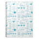Introducing our lovely spiral notebook, the perfect place to jot down all your thoughts and ideas! This notebook features a beautiful design with a white background and light blue and turquoise hearts, along with the words "love" and "love you" in different fonts and going in multiple directions. It's a super cute design that is sure to brighten up your day!