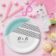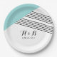 Modern and trendy Geometric Stripe Wedding Paper Plates with a turquoise triangle and thinly striped accent. These simple yet elegant plates are set up to be easily customized with your wedding information. Find more customization options by clicking Customize It.