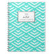 Turquoise Geometric Waves Pattern Personalized Notebook. Customizable modern notebook featuring a turquoise and white geometric pattern. This modern and chic notebook will be perfect as a personalized gift.