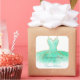 Gorgeous watercolor turquoise gown with gold glitter border and elegant script font on all personal information. Color of the script is beautifully paired with the color of the gown.