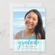 Be proud, rejoice and showcase this milestone of your favorite grad! Send out this stunning, modern, sparkly turquoise blue typography script against a baby turquoise blue and white striped background with turquoise and gold dots, personalized photo announcement for an event to remember. Personalize the custom text with your grad’s name, school and class year. Matching invites, thank you cards, cap toppers, napkins, plates and other graduation goodies are also available in this trendy and stylish collection. Guaranteed to add stylish fun to her special occasion!