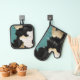 Turquoise Gold, Black White Cowhide Oven Mitt & Pot Holder Set