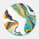 Teal, turquoise, white, black and gold marble fluid art digital pour painting effect.
