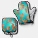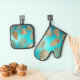 Turquoise Gold Tropical Leaves Oven Mitt & Pot Holder Set