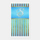 Turquoise, Green, and White Stripes Paper Guest Towel Napkin. A blue, monogrammed modern, chic, and contemporary pattern design to enhance your decor for the master or guest bathroom. Change the monogram, background color, or just enjoy the pattern. Complimentary towel sets, bath mats, and accessories available.