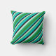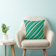 This throw pillow design features a dark turquoise, forest green, aquamarine, mint cream, and black colored striped pattern.