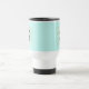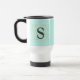 Modern Turquoise Green Hexagon Monogram travel mug. A cute and chic design with your initial featured in front of a gold hexagon pattern and a pastel turquoise green background. When personalizing, you can use the design tool to change colors, fonts or more! Elegant and trendy!
