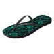 Turquoise green polka dot pattern on black flip flops