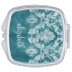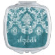 Turquoise Grungy Damask Pattern Custom Text Makeup Mirror