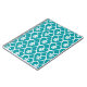 A pattern of white hearts, with a Fleur De Lis in the center of each one, is on a beautiful turquoise background.