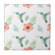 Turquoise Hummingbird Hibiscus Pattern Ceramic Tile