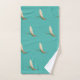 This towel features a Rufous-tailed Hummingbird pattern on a turquoise background. The Rufous-tailed Hummingbird (Amazilia tzacatl) is native to Central and South America. It can be found along river banks and the forest edge, as well as in gardens and cultivated areas.