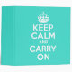 Turquoise and white "Keep Calm and Carry On" modern version of classic poster.