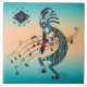 Brighten Your Home with this Unique "One of a Kind" Southwest Kokopelli Tile! It Features a Southwest Turquoise, White, Gold and Rust Kokopelli Playing the Flute and Dancing Under the Sun on a Turquoise and Orange Sunset Background...Surrounded by Music Notes!