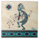 Brighten Your Home with this Unique "One of a Kind" Southwest Kokopelli Ceramic Tile! It Features a Turquoise Southwest Kokopelli Playing the Flute with Music Notes, Dancing around a Cactus Under the Sun on a Tan Sandstone Background...and a Bottom Border in Turquoise, Gold, Rust and White!