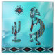 Brighten Your Home with this Unique "One of a Kind" Southwest Kokopelli Ceramic Tile! It Features a Turquoise Southwest Kokopelli Playing the Flute Dancing around a Cactus Under the Sun on a Turquoise Swirl Background...with a Bottom Border in Turquoise, Gold, Rust and White!
