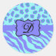 Turquoise Lavender Zebra Leopard Skin Monogram Classic Round Sticker