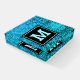 A turquoise and blue ombre leaf foliage damask pattern on a rich, deep turquoise textured background adorns this modern and trendy monogramed glass paperweight. Makes a chic and stylish statement on your desktop. A great gift for a friend, as well as yourself!